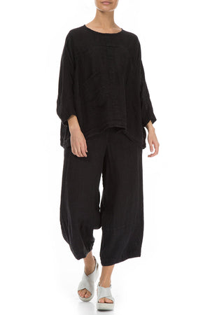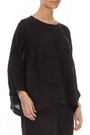 Boxy Black Gauze Linen Blouse