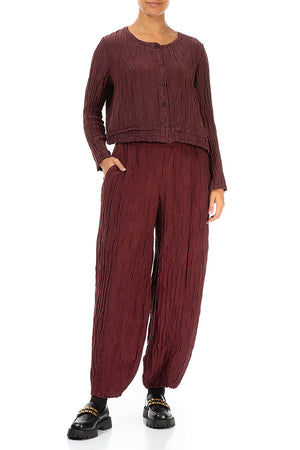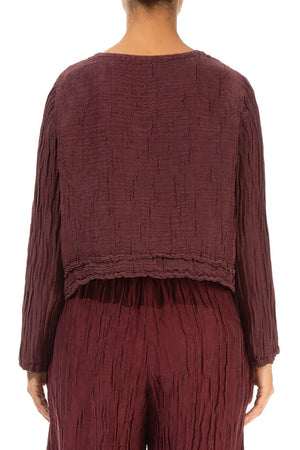 Buttons Crinkled Merlot Silk Jacket