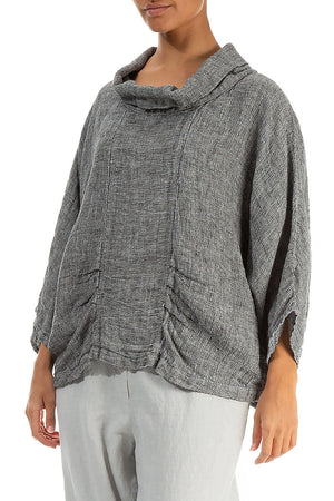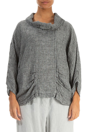 Cowl Neck Grey Mélange Linen Blouse