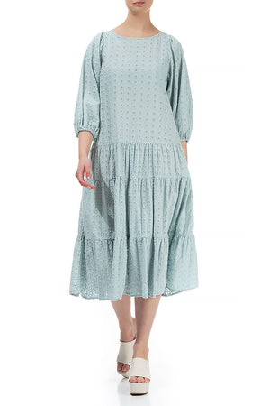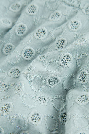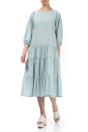 Embroidered Puff Sleeves Cream Grey Cotton Dress