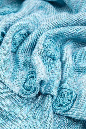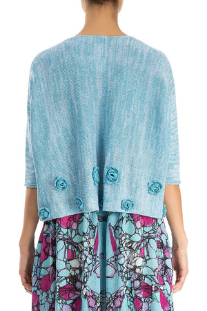 Flowers Decorated Mélange Turquoise Linen Jumper