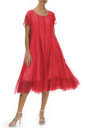 Flowy Poppy Red Silk Chiffon Dress