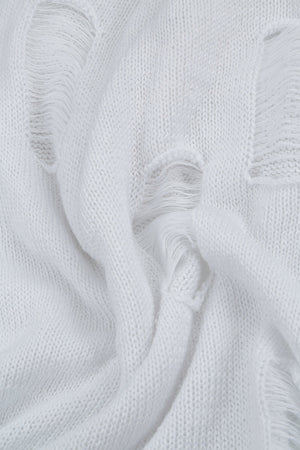 Hole-Detail White Linen Jumper