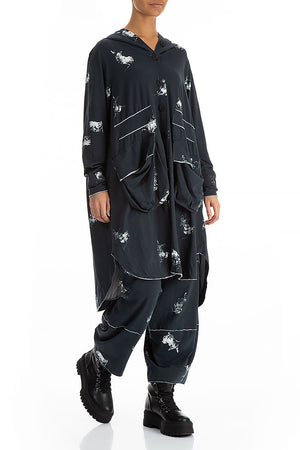 Hooded Oversized Abstract Print Cotton Jacket-Coat