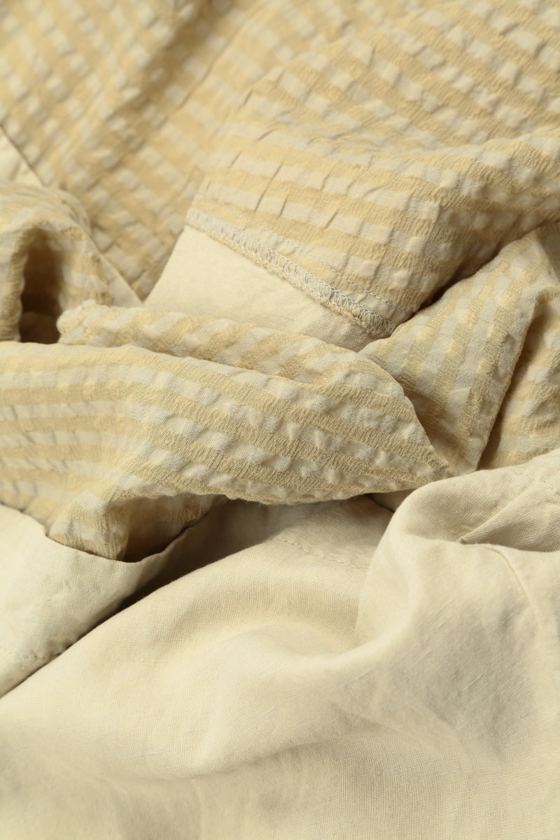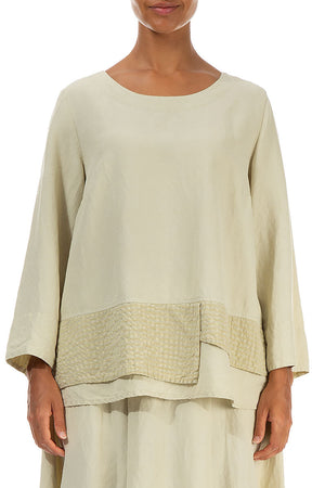 Layered Textured Hem Laurel Green Silk Linen Blouse
