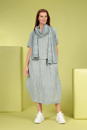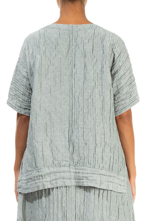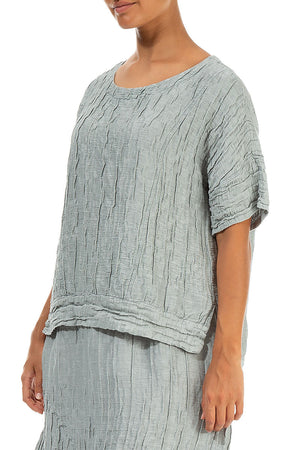 Longer Back Crinkled Sage Silk Blouse