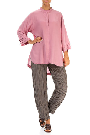 Longer Back Mauve Taupe Silk Bamboo Shirt
