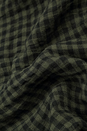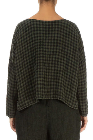 Loose Forest Mist Check Linen Blouse