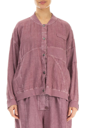Mauve Taupe Off-Dye Linen Bomber Jacket