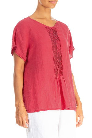 Pin-Tucked Raspberry Linen Blouse