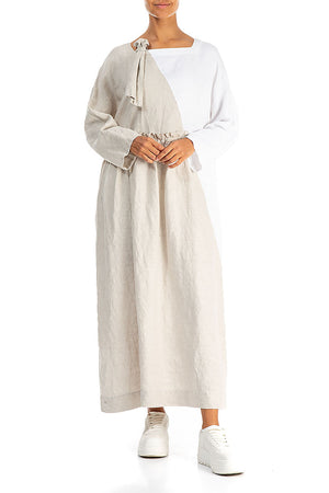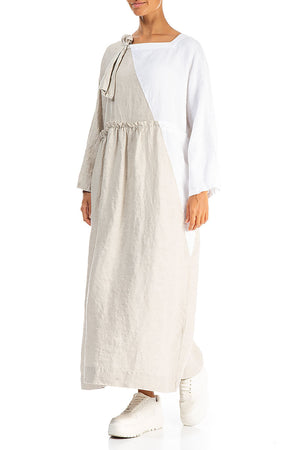 Side Ribbon Natural White Linen Dress