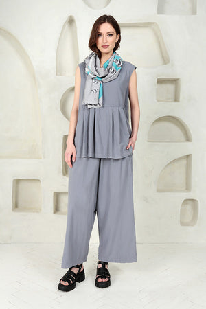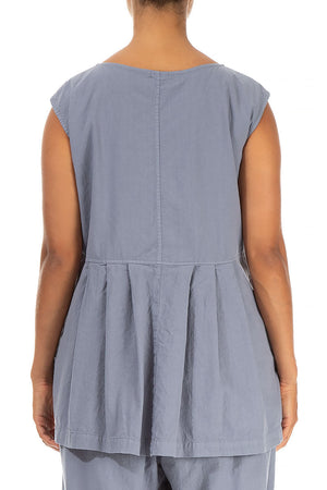 Sleeveless Pleated Storm Grey Cotton Blouse