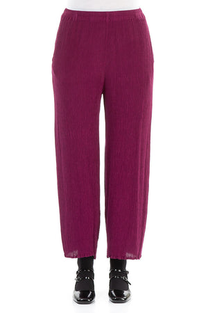 Straight Cropped Magenta Silk Viscose Trousers