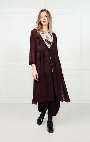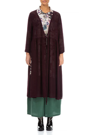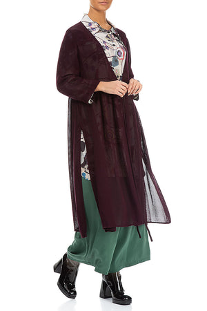 Tie Front Aubergine Mesh Silk Rayon Jacket