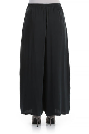 Wide Leg Midnight Blue Silk Trousers